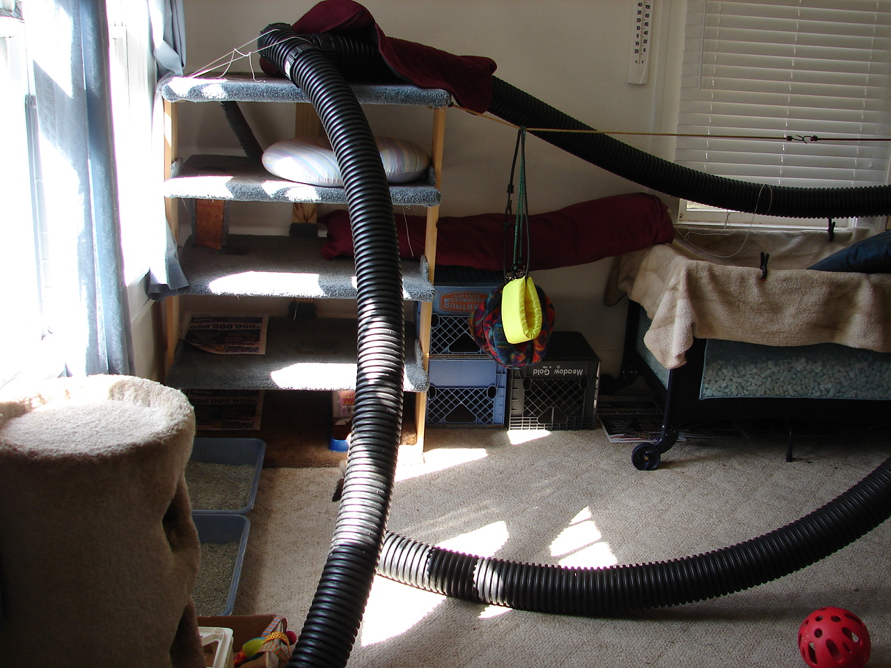 February 14, 2007 Bueller at top of ramp and now down Tubes everywhere all the way to the top closet shelf