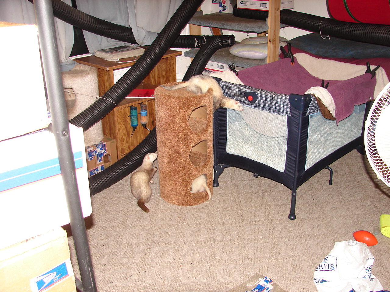August 15, 2006 - The Ultimate Ferret Cage - 7 Bedroom, 3 Bath, Pool, Play Yard 4 Unit/Condo Sleep Area with travel tubes to 5 Story Play Tower and Ground Level 3 Two Story Condo Units, 5 Level Play Tower with Nap Level, Tube to Pool & AM/FM Radio Pool with packing popcorn and Deck Level, Water, CCTV, Night Light, Food Pantry